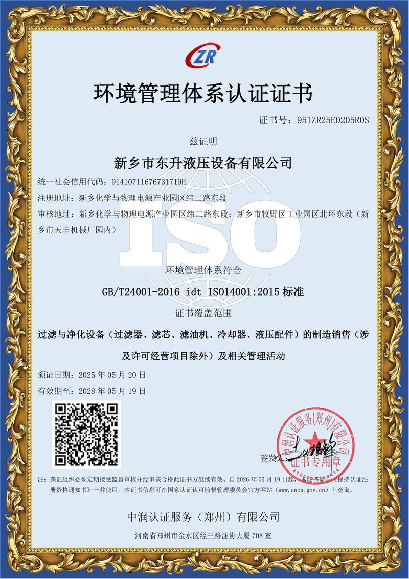 環(huán)境管理體系認(rèn)證證書(shū)
